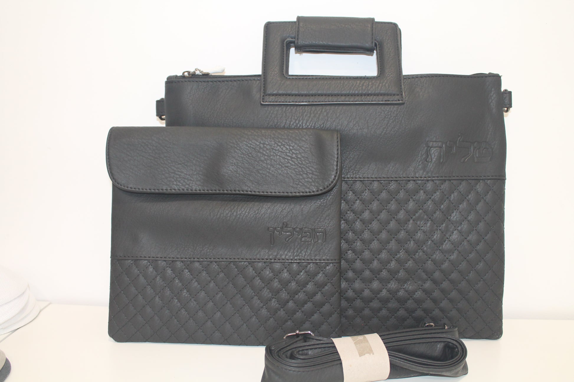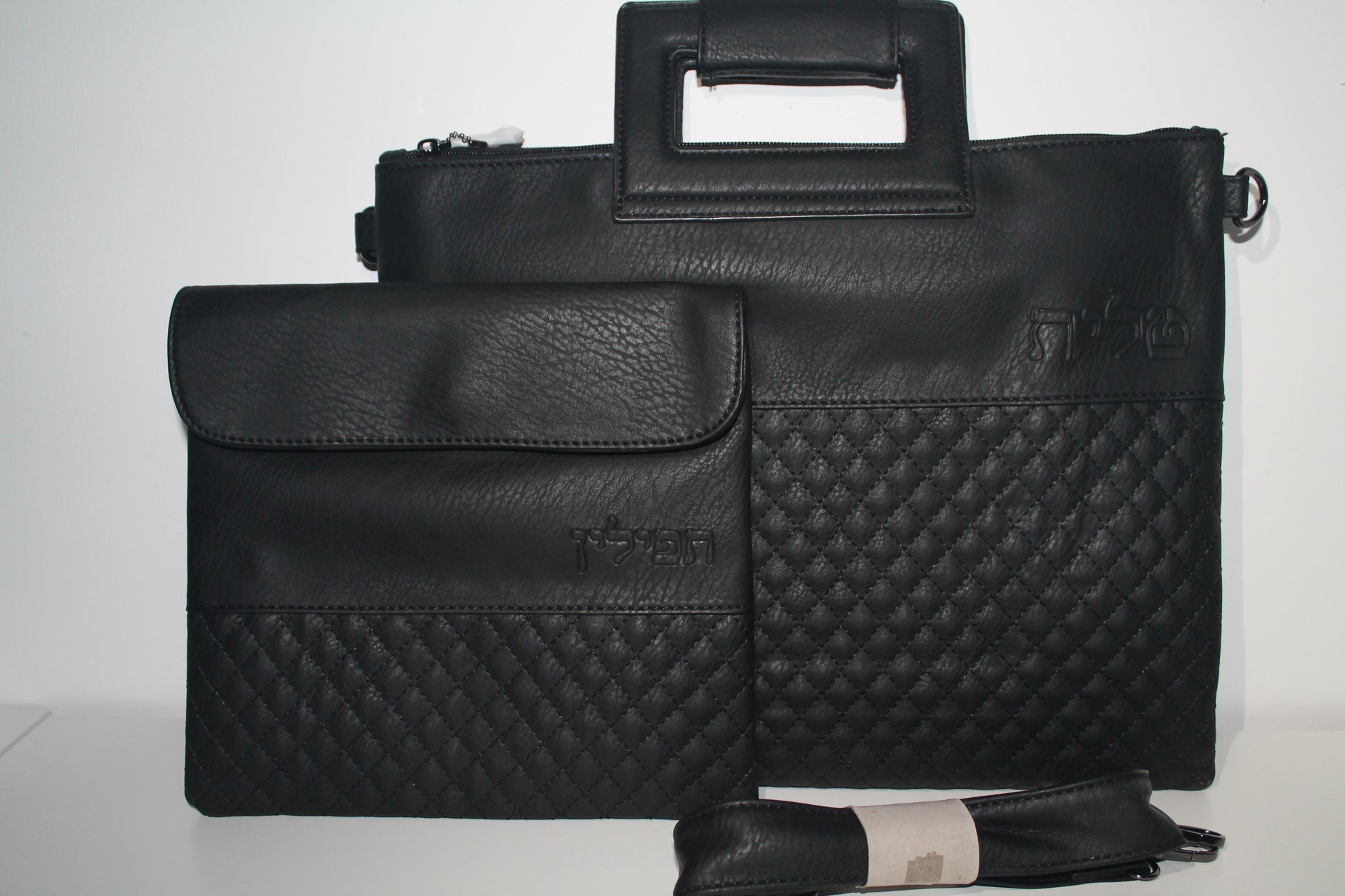 כיסוי טלית ותפילין עם ידית ורצועת נשיאה דגם דמוי עור שחור