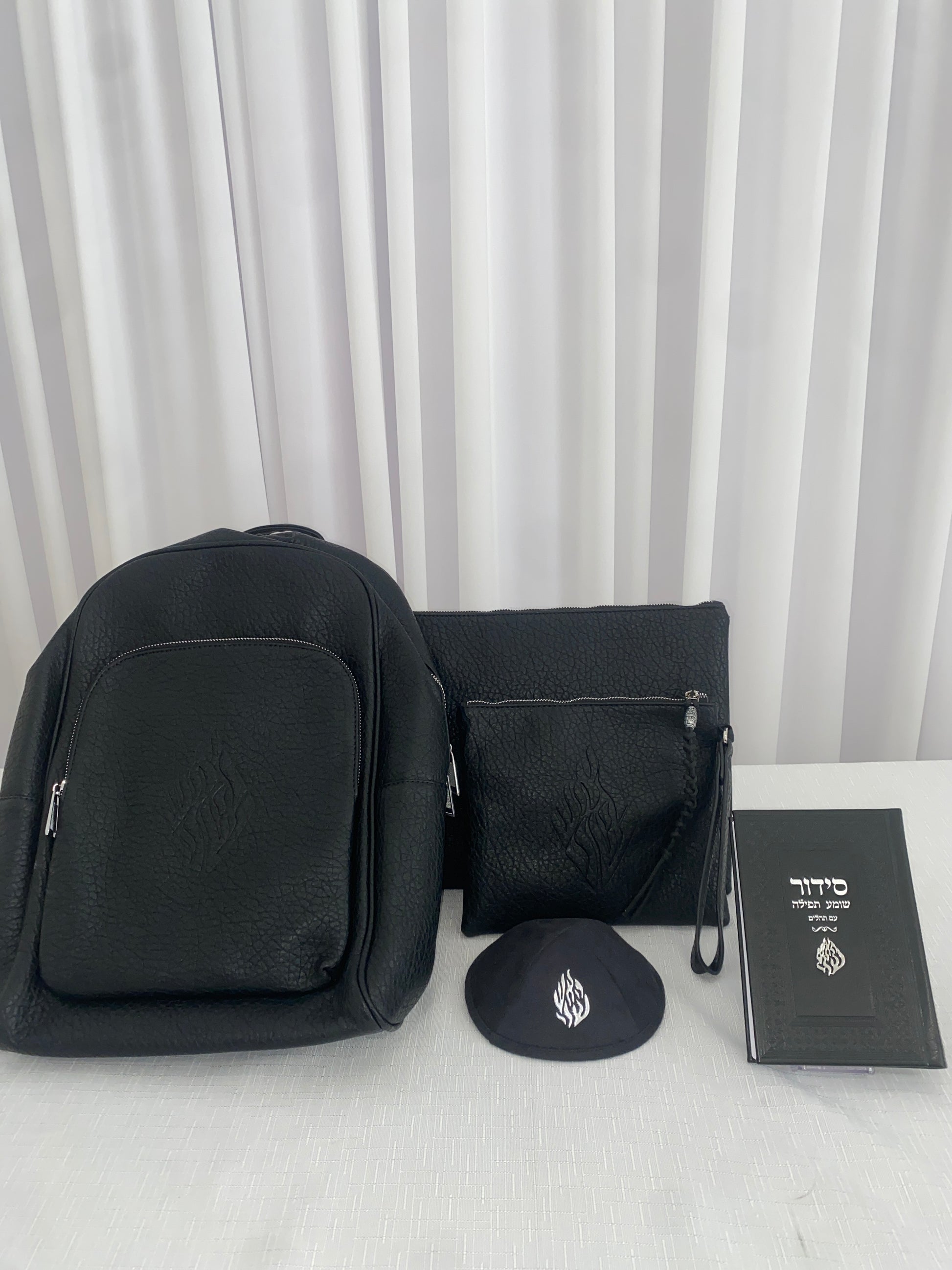 סט האש שלי הכולל תיק גב כיסויים לטלית ותפילין סידור וכיפה